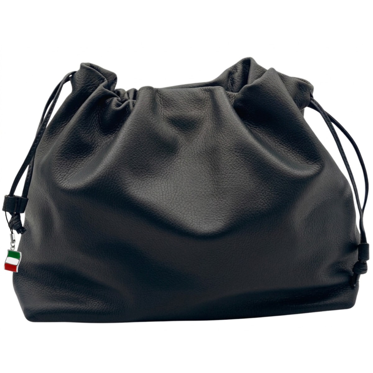 Diese moderne Ledertasche aus weichem Kalbsleder besticht durch die angenehme Leichtigkeit und tolle Funktionalität. Der Kordelzugverschluss sorgt für den charakteristischen gerafften Effekt und verleiht dadurch der Tasche das Beuteldesign. Zusätzlich ist ein Magnetverschluss vorhanden. Man kann die Tasche durch den großen Schultergurt leger über der Schulter tragen. Im Lieferumfang enthalten ist ein kleiner Italien Flaggen-Anhänger, der am Produkt oder auch als Handyanhänger getragen werden kann.- besondere Eigenschaften