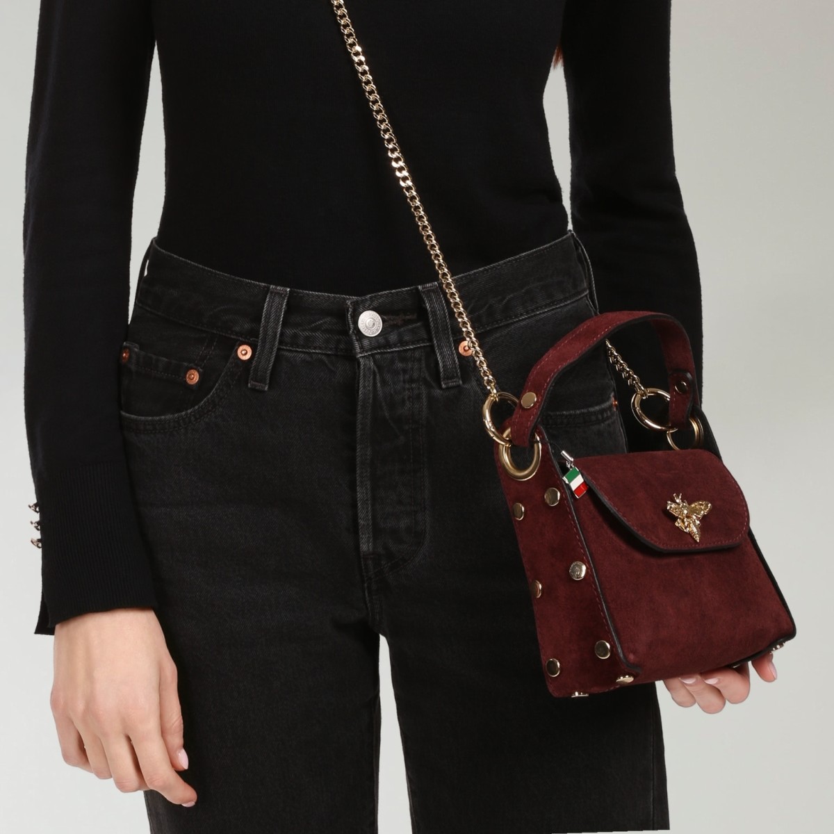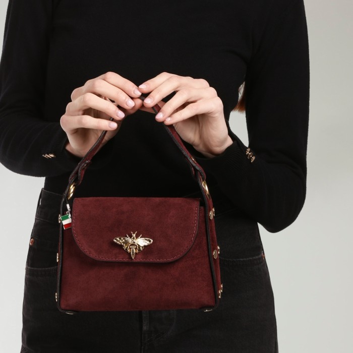 Umhängetasche Biene Wildleder Damen bordeauxrot Florence