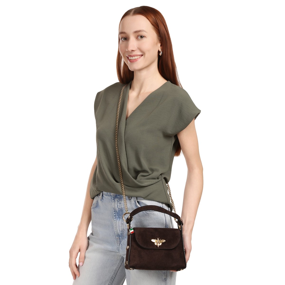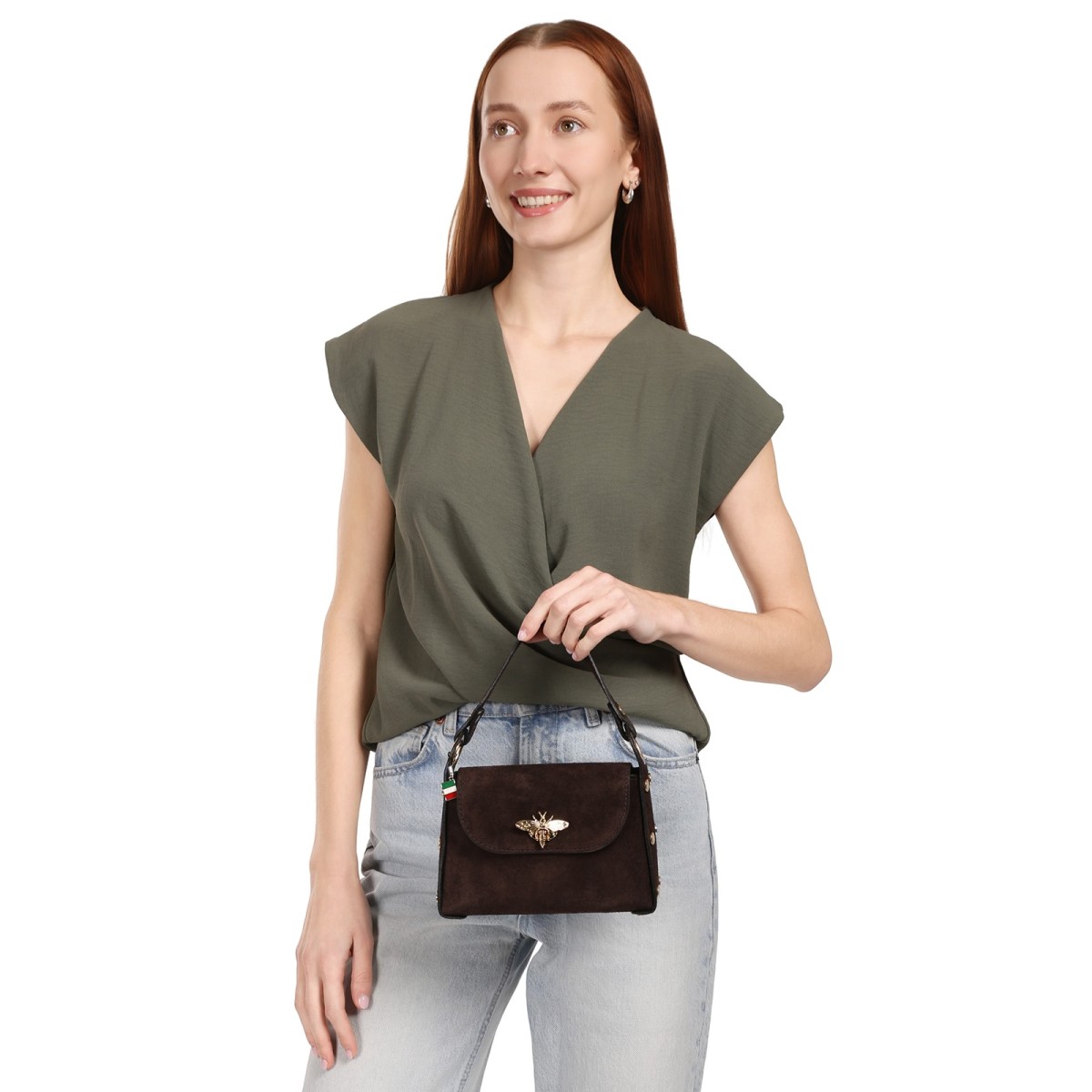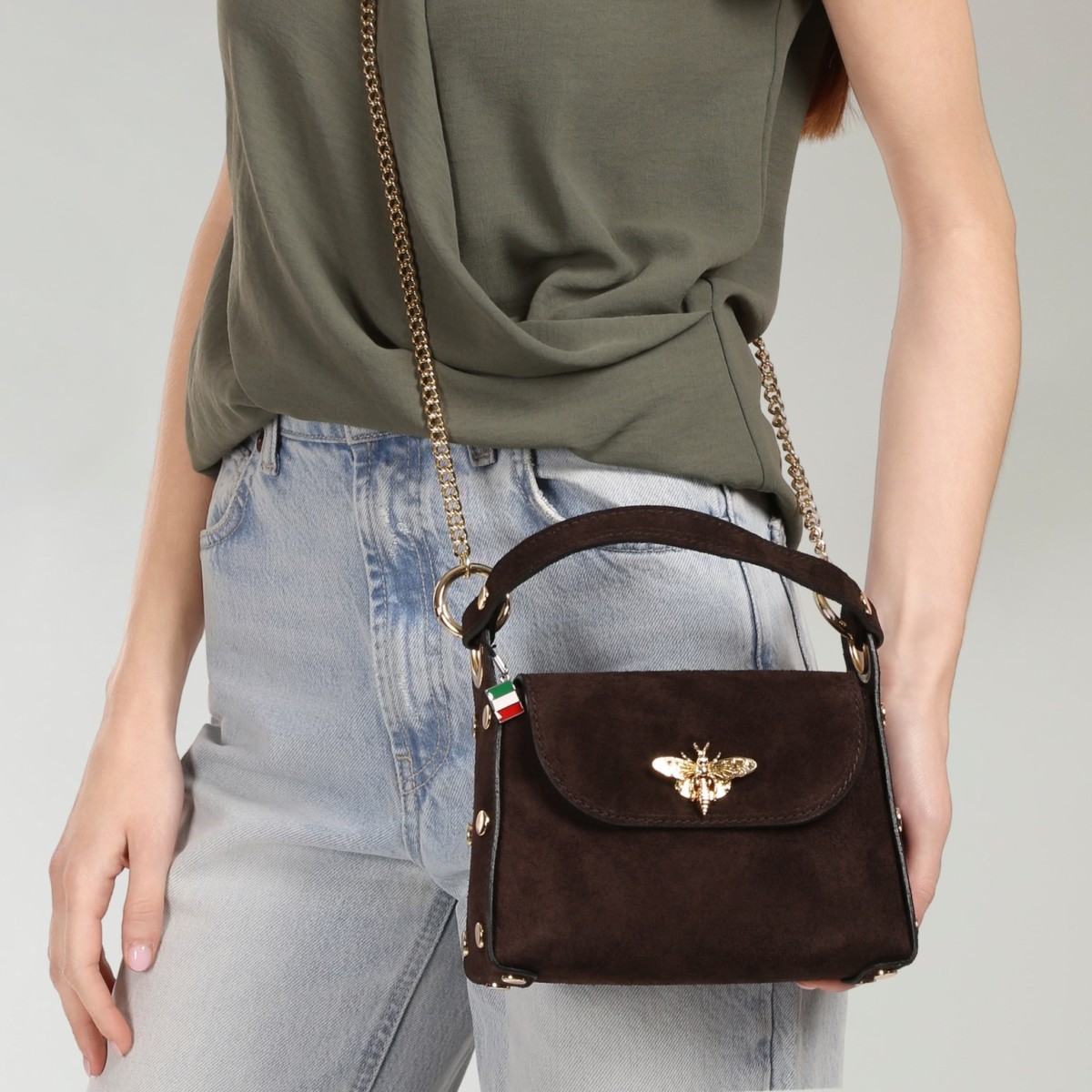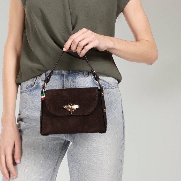 Umhängetasche Biene Wildleder Damen dunkelbraun Florence