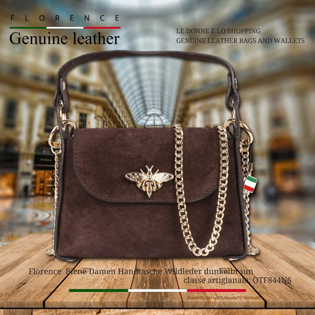 Die sehr schöne Wildleder Florence Marken-Tasche passt in die aktuelle Damenmode, ist bequem zu tragen und ist gut kombinierbar. Sie kommt in der ansprechenden Farbe dunkelbraun und ist mit einem Schnappverschluss sicher verschlossen.- Zusatzinformation