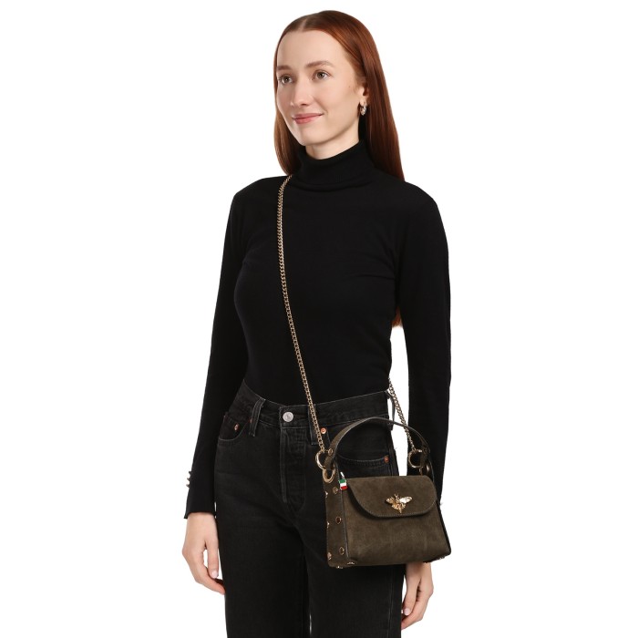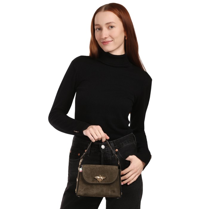 Umhängetasche Biene Wildleder Damen olivgrün Florence