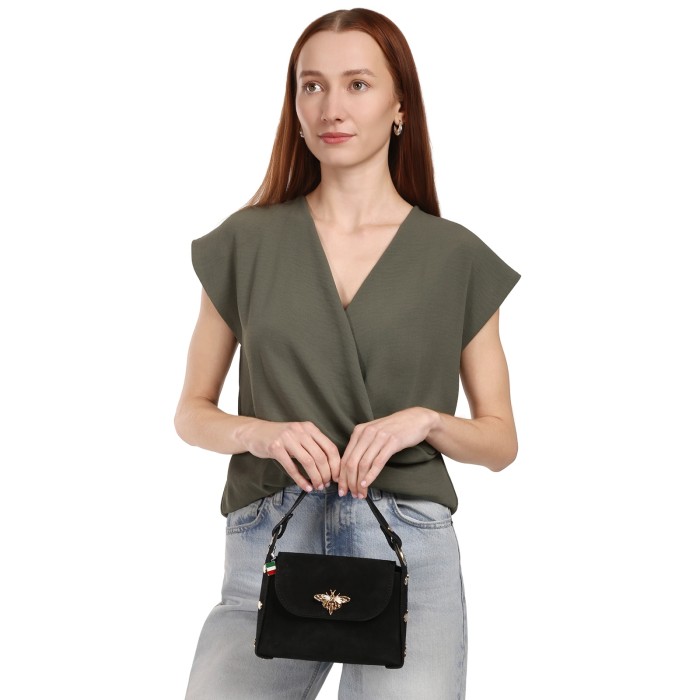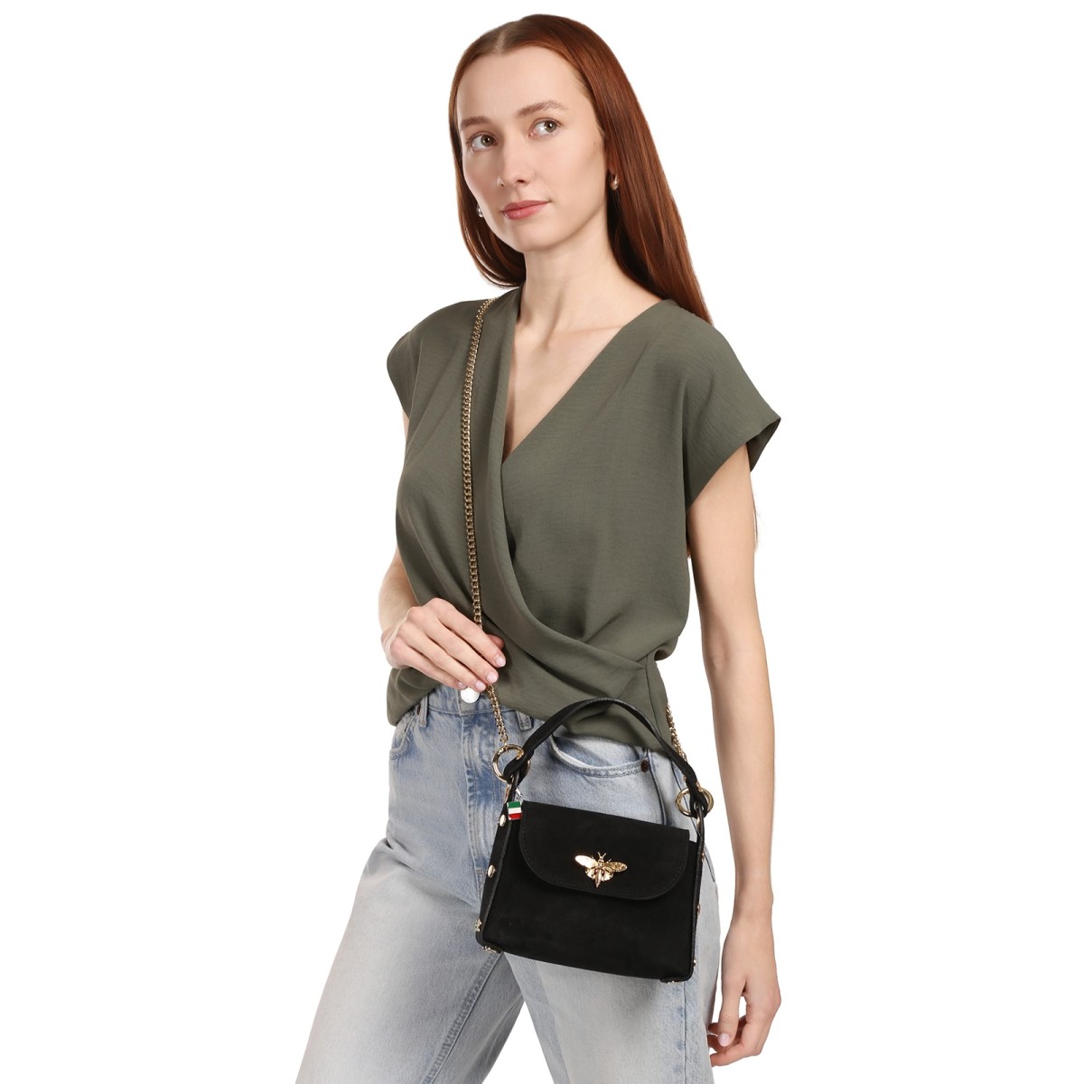 Umhängetasche Biene Wildleder Damen schwarz Florence