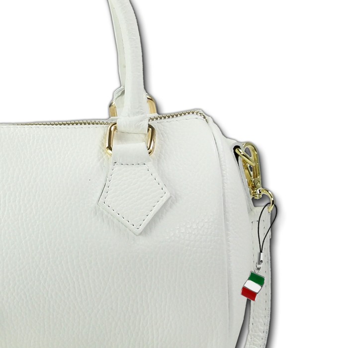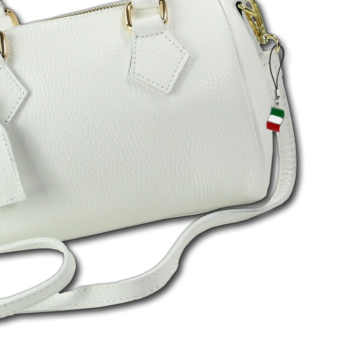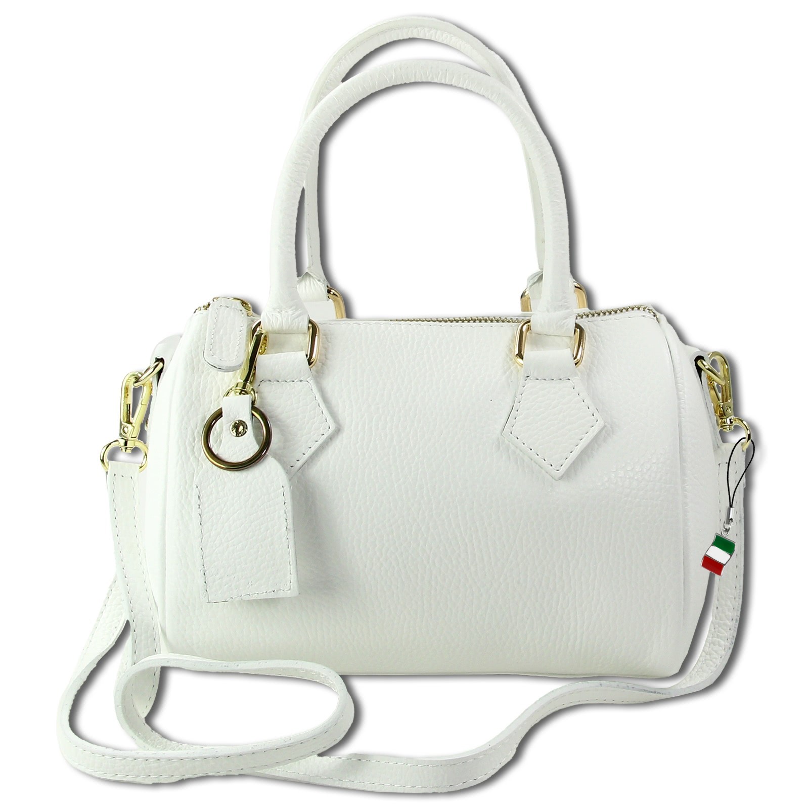 Diese handgefertigte Umhängetasche besticht durch ihr modisches Design mit einzigartiger Funktionalität- Made in Italy. Diese kompakte Tasche im Bowlingtaschen-Design aus echtem Leder, begleitet Sie problemlos durch den Tag und durch den Abend. Tragen Sie sie quer am Körper für einen stylischen modischen Look. Mit dem Trageriemen kann man die Tasche auch über der Schulter tragen oder leger an den 2 Henkeln in der Hand.- besondere Eigenschaften