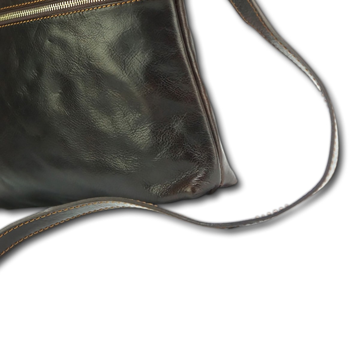 Diese handgefertigte Umhängetasche besticht durch ihr modisches Design mit einzigartiger Funktionalität- Made in Italy. Diese kompakte Tasche aus echten Leder begleitet Sie problemlos durch den Tag und durch den Abend. Tragen Sie sie quer am Körper für einen legeren modischen Look oder mit ihrem verstellbaren Trageriemen elegant über der Schulter.- besondere Eigenschaften