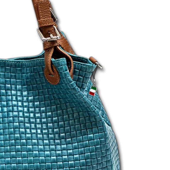 Handtasche Leder Damen türkis,braun Flechtmuster Florence