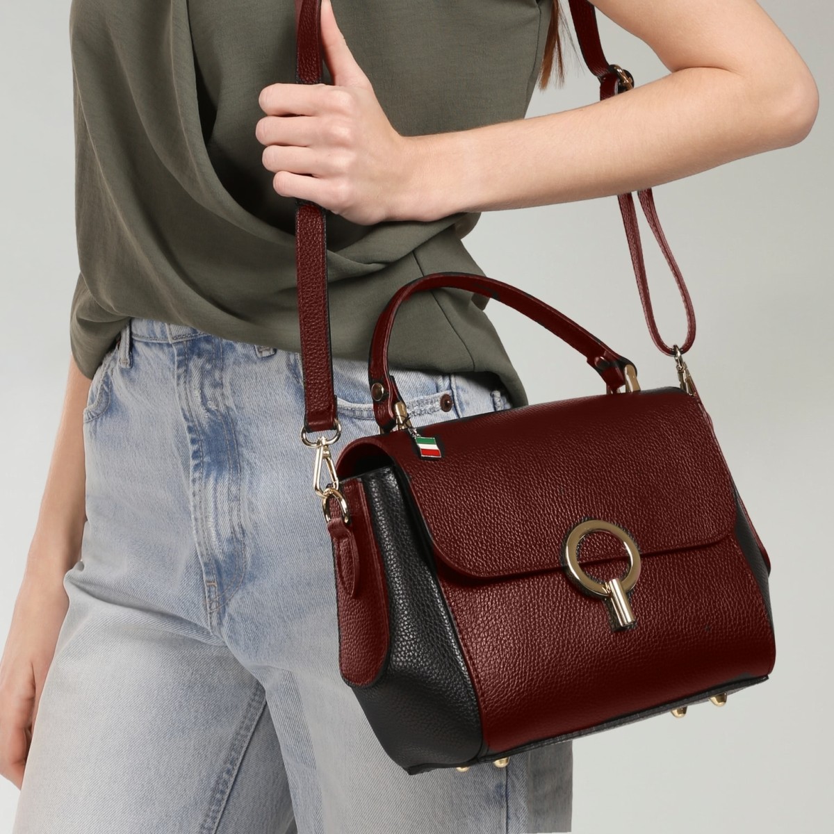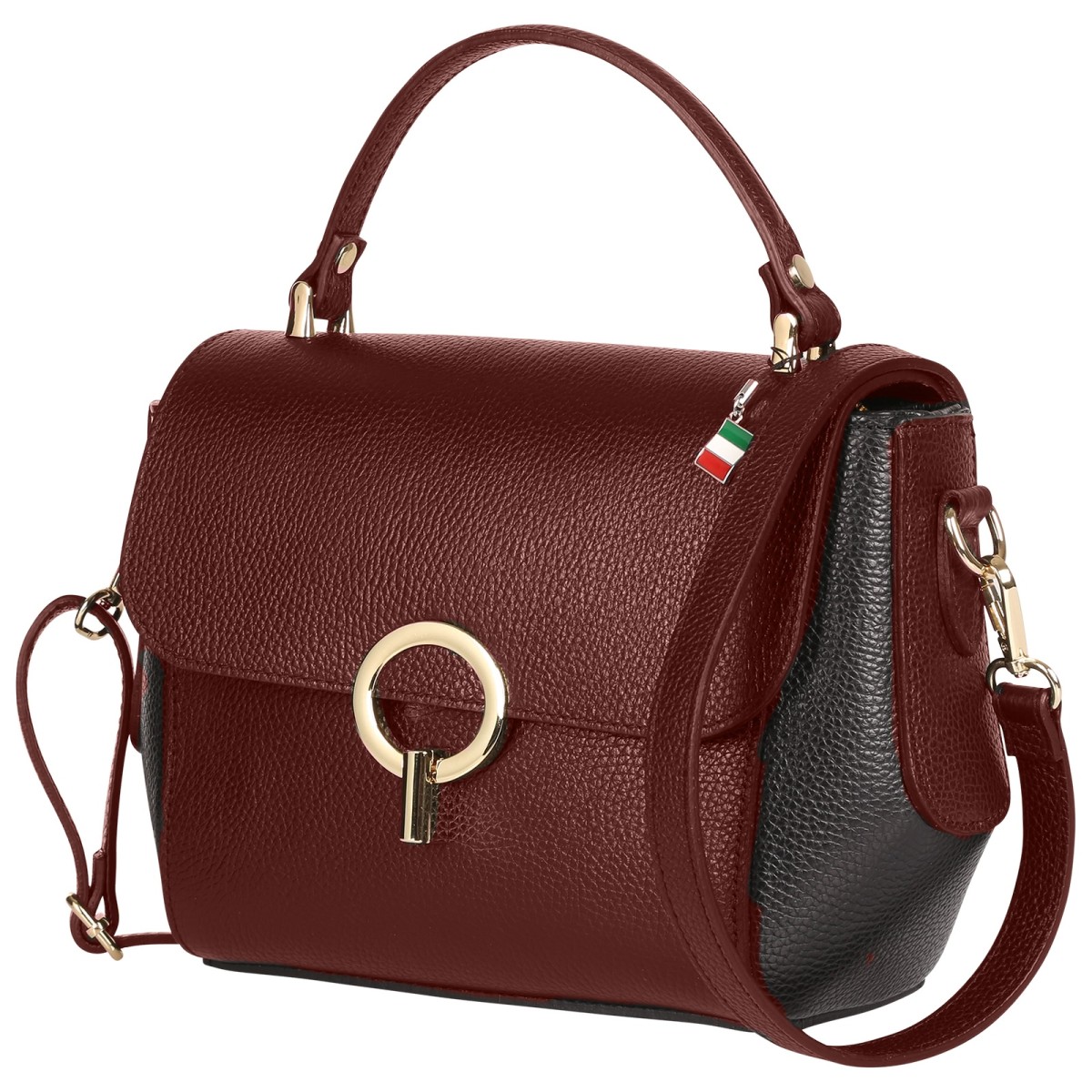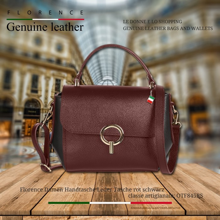 Florence Damen Handtasche Leder zweifarbige Tasche dunkelrot schwarz OTF845RS