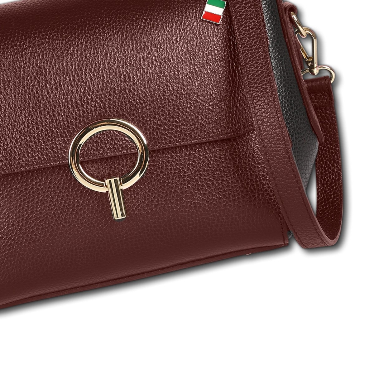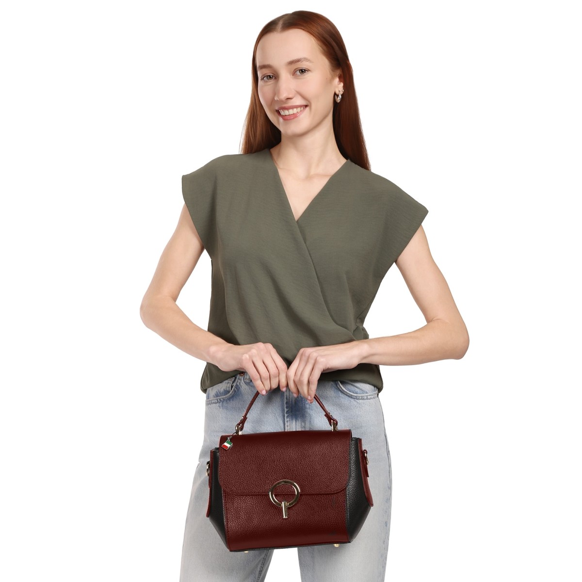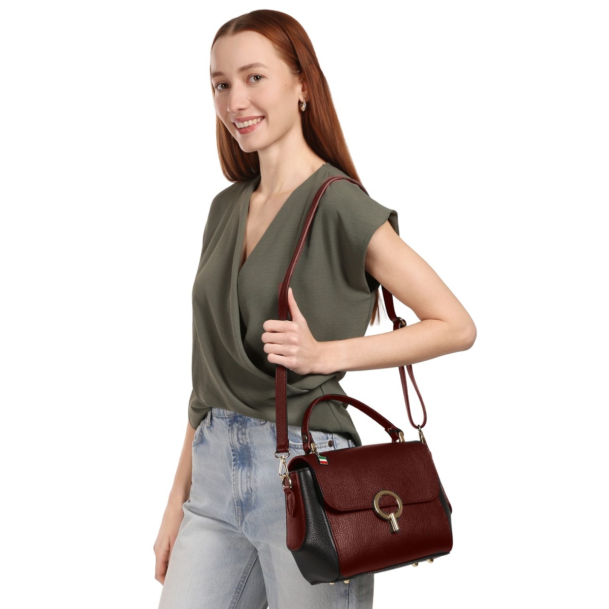 Florence Damen Handtasche Leder zweifarbige Tasche dunkelrot schwarz OTF845RS