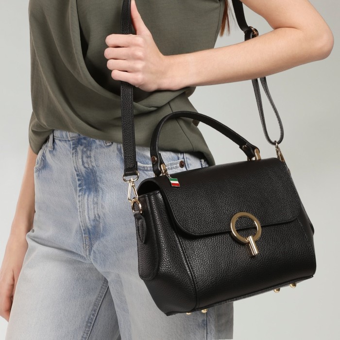 Florence Damen Handtasche Leder Tasche schwarz OTF845S1