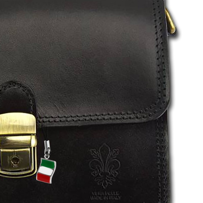 Diese handgefertigte Umhängetasche besticht durch ihr modisches Design mit einzigartiger Funktionalität- Made in Italy. Diese kompakte Tasche aus echten Leder begleitet Sie problemlos durch den Tag und durch den Abend. Tragen Sie sie quer am Körper für einen legeren modischen Look oder mit ihrem verstellbaren Trageriemen elegant über der Schulter. Im Lieferumfang enthalten ist ein kleiner Italien-Anhänger, der am Produkt oder auch als Handyanhänger getragen werden kann.- besondere Eigenschaften
