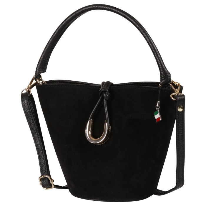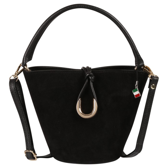 Die hochwertige Handtasche von Florence ist eine modische Tasche aus weichem, italienischem Wildleder. Diese Echtledertasche verfügt über einen Reißverschluss und zusätzlich einem Knotenverschluss mit goldfarbenem Metallring. Sie ist sehr gut geeignet für den täglichen Gebrauch, da man alles wichtige unterbringen kann. Sie kann in der Hand getragen werden oder auch mit dem zusätzlichem Gurt über der Schulter. Die Höhe der Tasche ist ca. 18cm.- Besonderheiten: