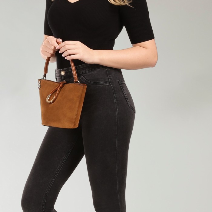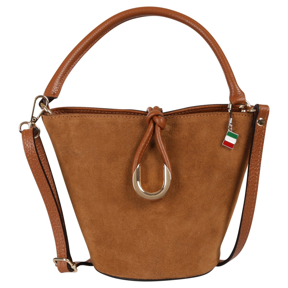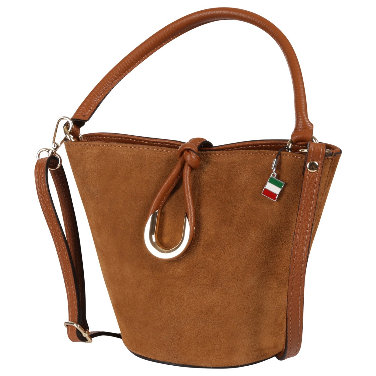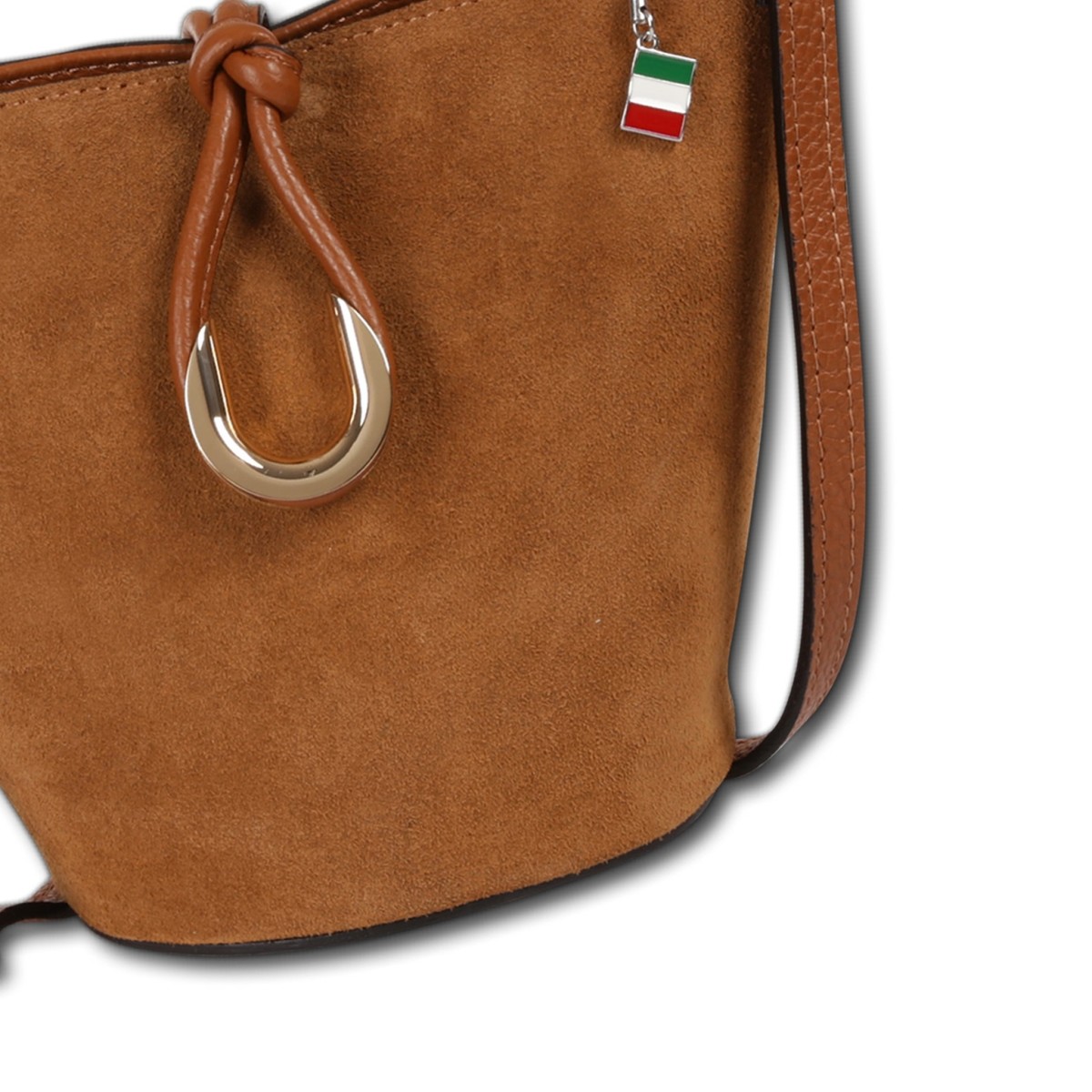 Die hochwertige Handtasche von Florence ist eine modische Tasche aus weichem, italienischem Wildleder. Diese Echtledertasche verfügt über einen Reißverschluss und zusätzlich einem Knotenverschluss mit goldfarbenem Metallring. Sie ist sehr gut geeignet für den täglichen Gebrauch, da man alles wichtige unterbringen kann. Sie kann in der Hand getragen werden oder auch mit dem zusätzlichem Gurt über der Schulter. Die Höhe der Tasche ist ca. 18cm.- Besonderheiten: