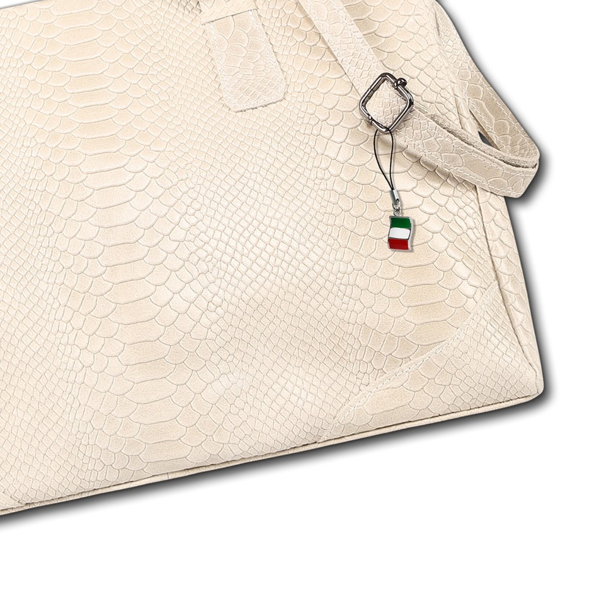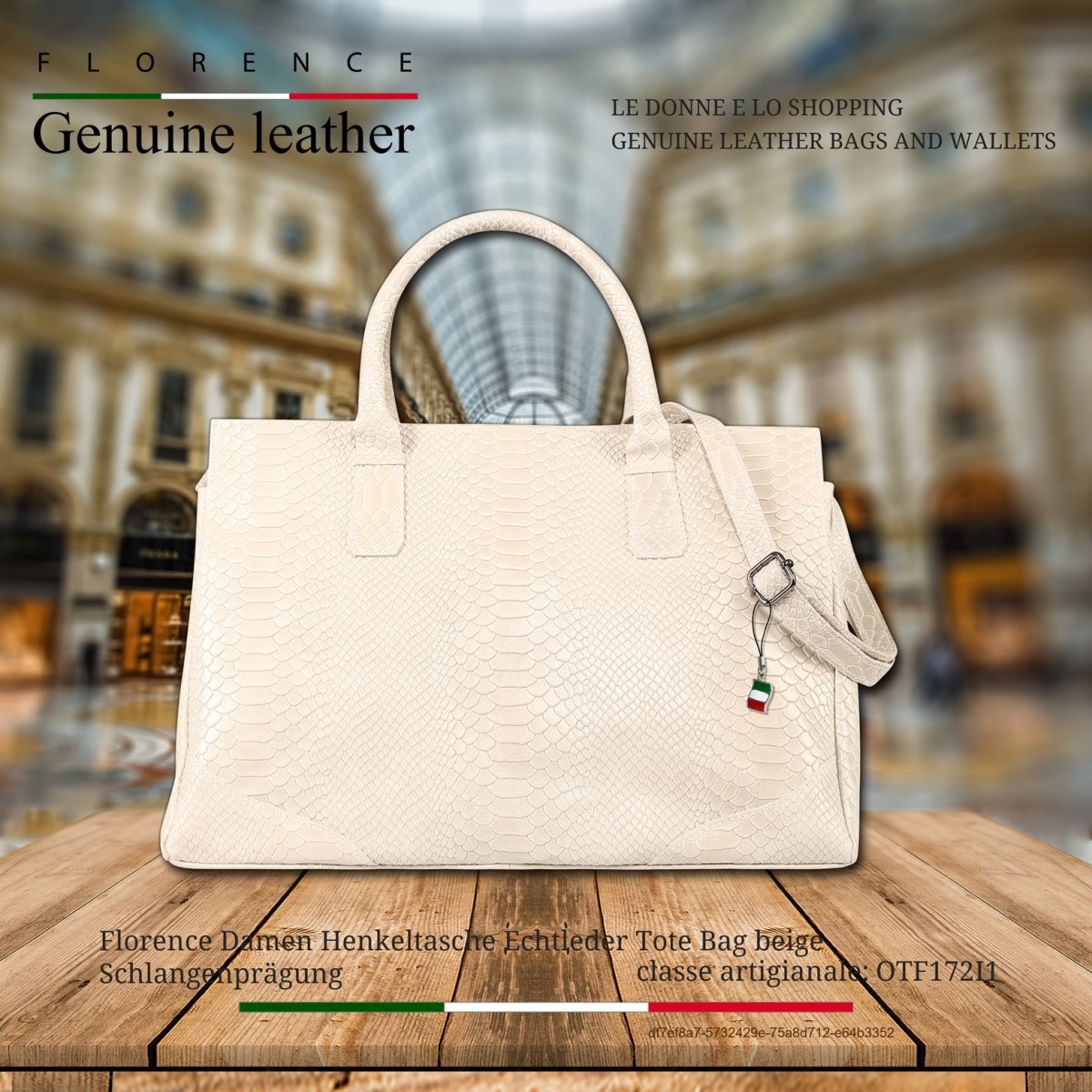 Diese hochwertige Henkeltasche Leder Damen beige Schlangenprägung Florence