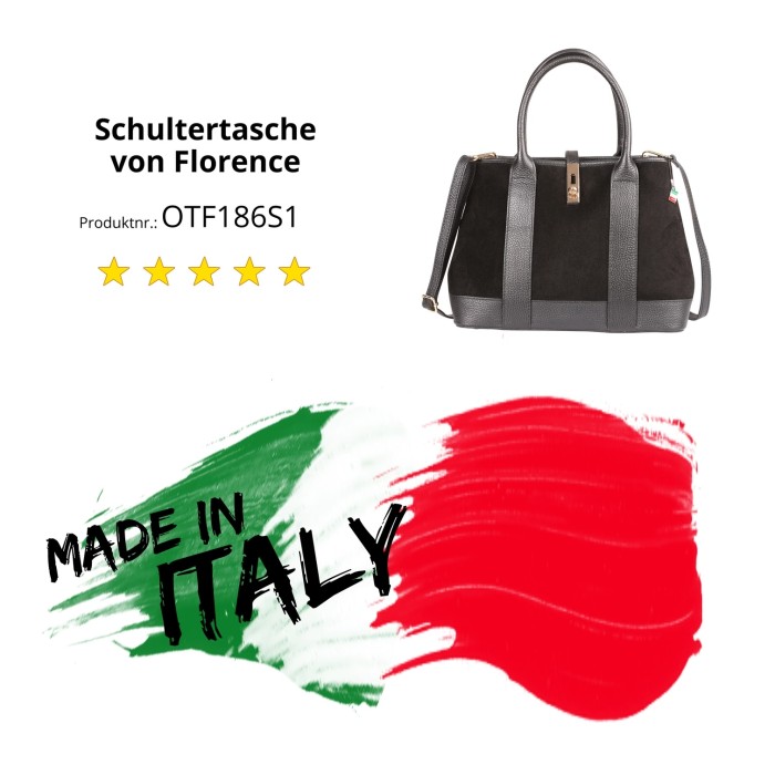 Florence Damen Leder Schultertasche Wildleder Tasche schwarz OTF186S1