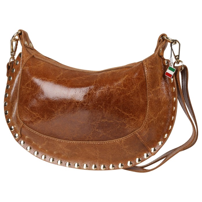 Schultertasche/ Satteltasche mit Nieten Leder Damen hellbraun Florence