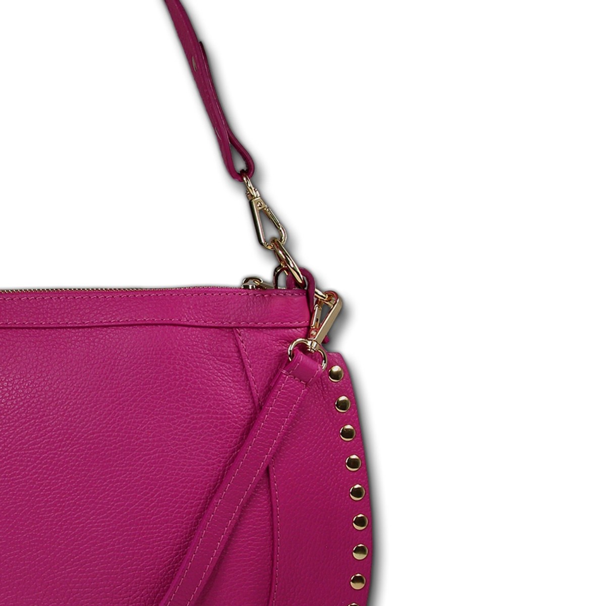 Schultertasche/ Satteltasche mit Nieten Leder Damen pink Florence