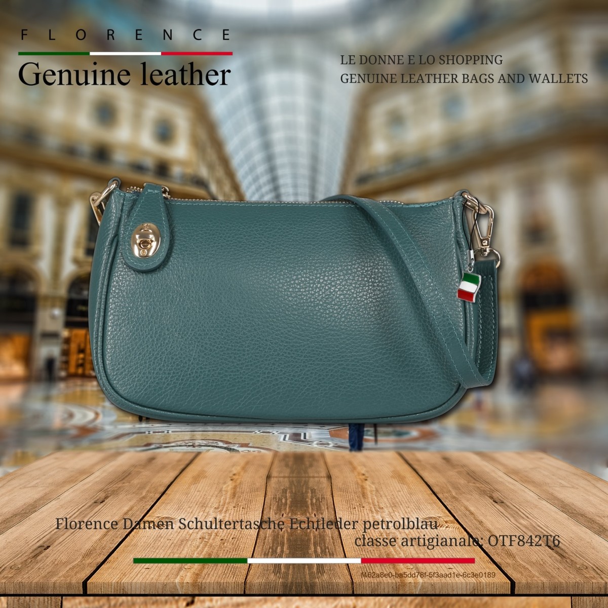 Florence Schultertasche Leder Damen petrolblau OTF842T6