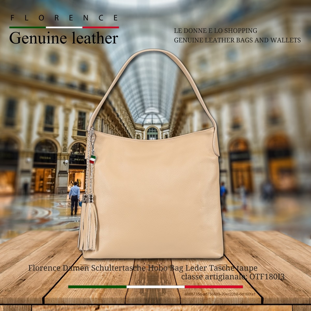 Florence Damen Schultertasche Hobo Bag Leder Tasche taupe OTF180I3