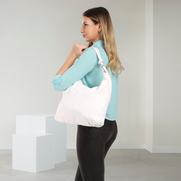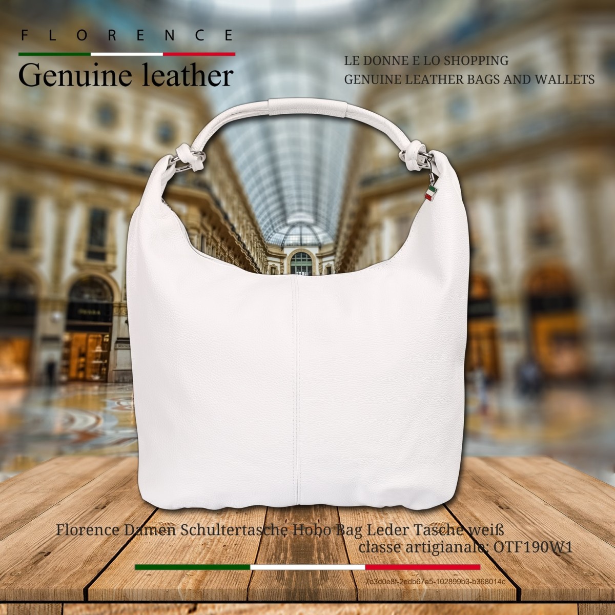 Florence Damen Schultertasche Hobo Bag Leder Tasche weiß