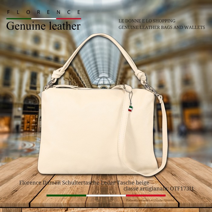 Florence Damen Schultertasche Leder Tasche beige OTF173I1