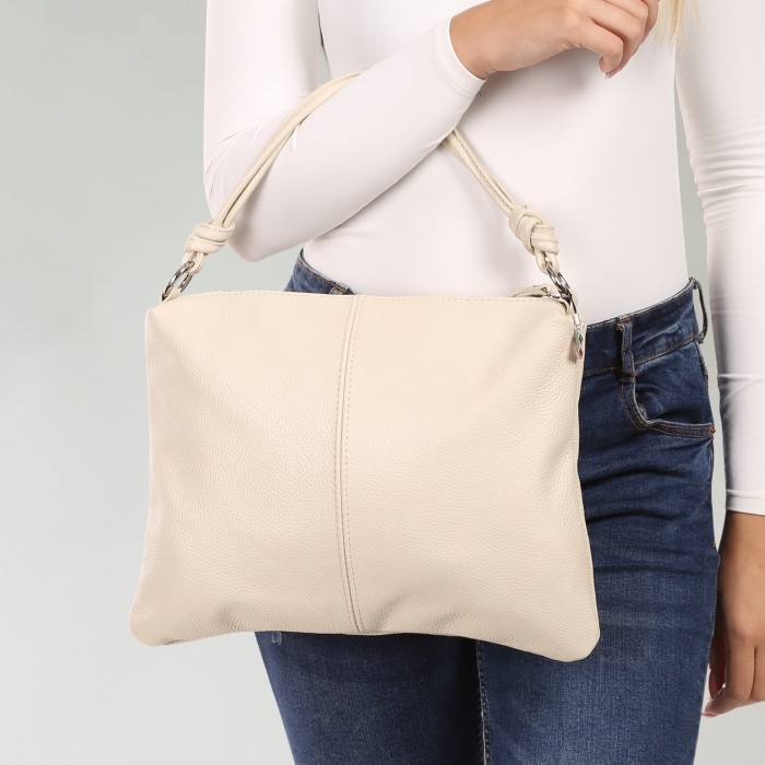 - Kurzbeschreibung: Schultertasche in beige mit Reißverschluss