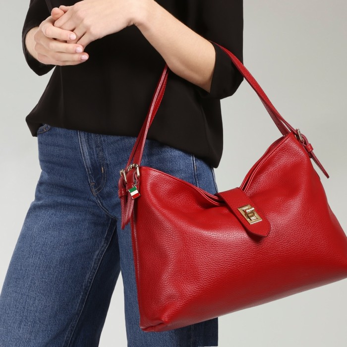 Die praktische Schultertasche von Florence ist eine moderne Tasche für die Freizeit und der Arbeit. Diese Echtledertasche hat eine große Öffnung, wo alle wichtigen Sachen, wie zum Beispiel Geldbörse, Handy, Kosmetik und Schlüssel ihren Platz finden. Der große Handgriff sind verstellbar und können lässig über der Schulter oder in der Hand getragen werden. Die Breite der Tasche ist ca. 37cm.- Besonderheiten: