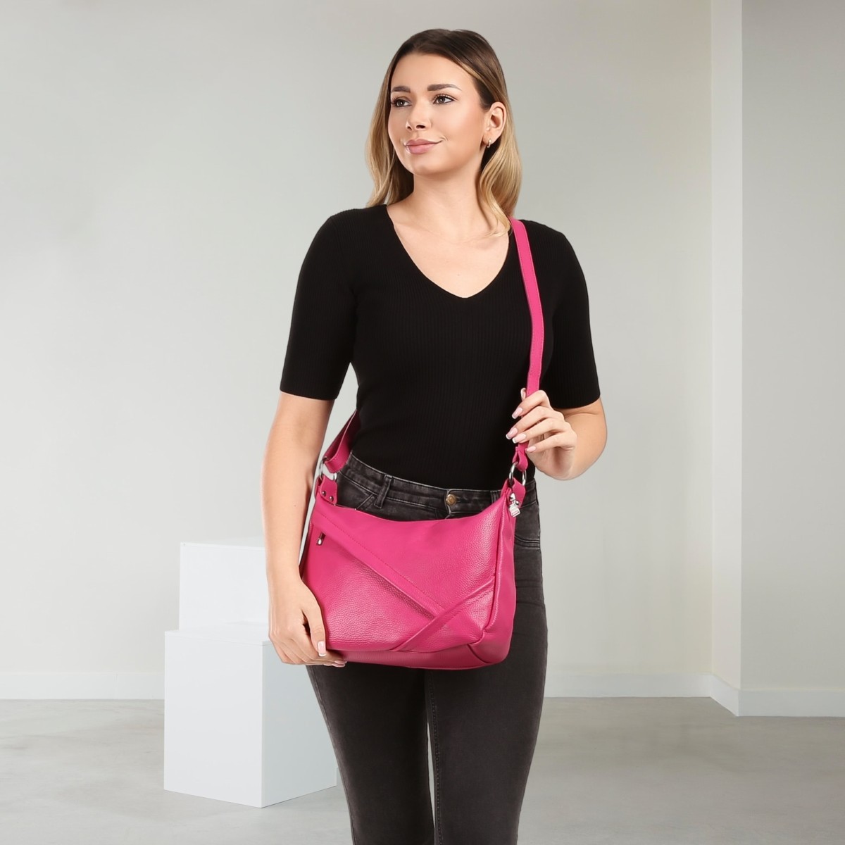 - Kurzbeschreibung: Schultertasche in fuchsia/pink mit Reißverschluss