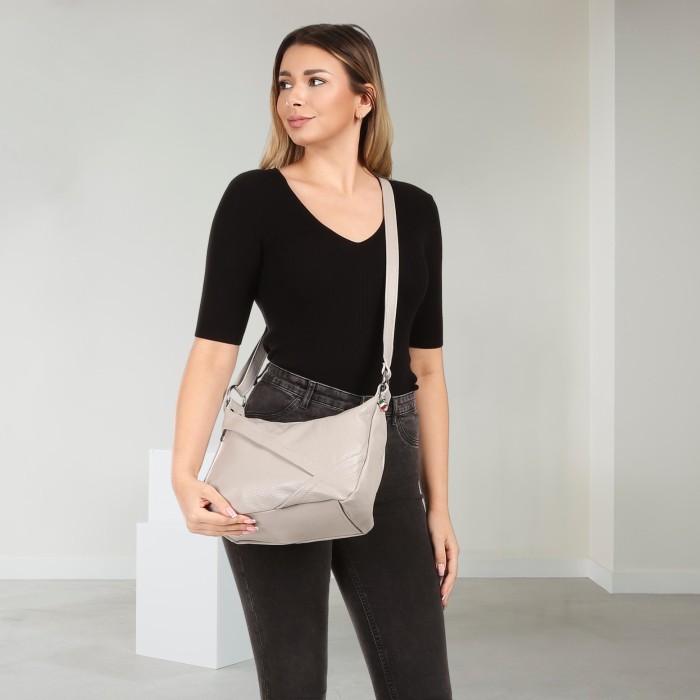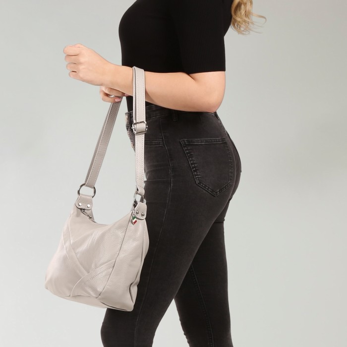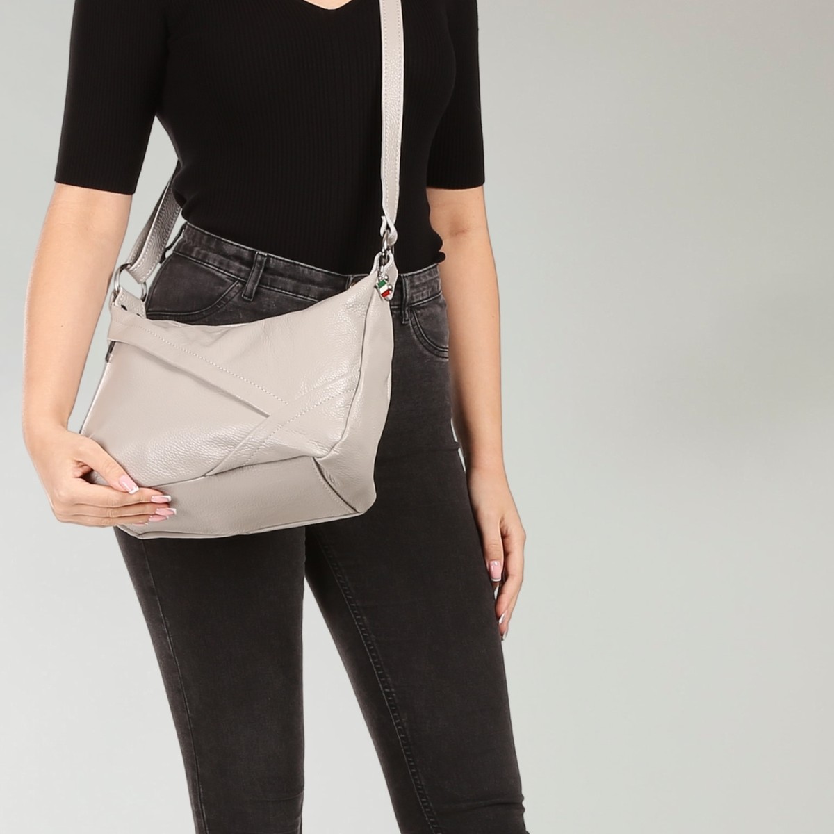 - Kurzbeschreibung: Schultertasche in hellgrau mit Reißverschluss