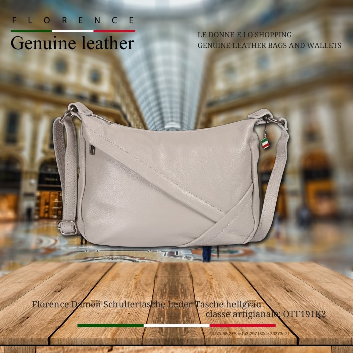 Florence Damen Schultertasche Leder Tasche hellgrau