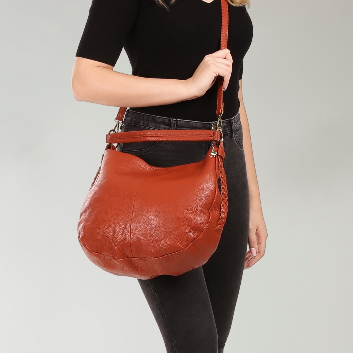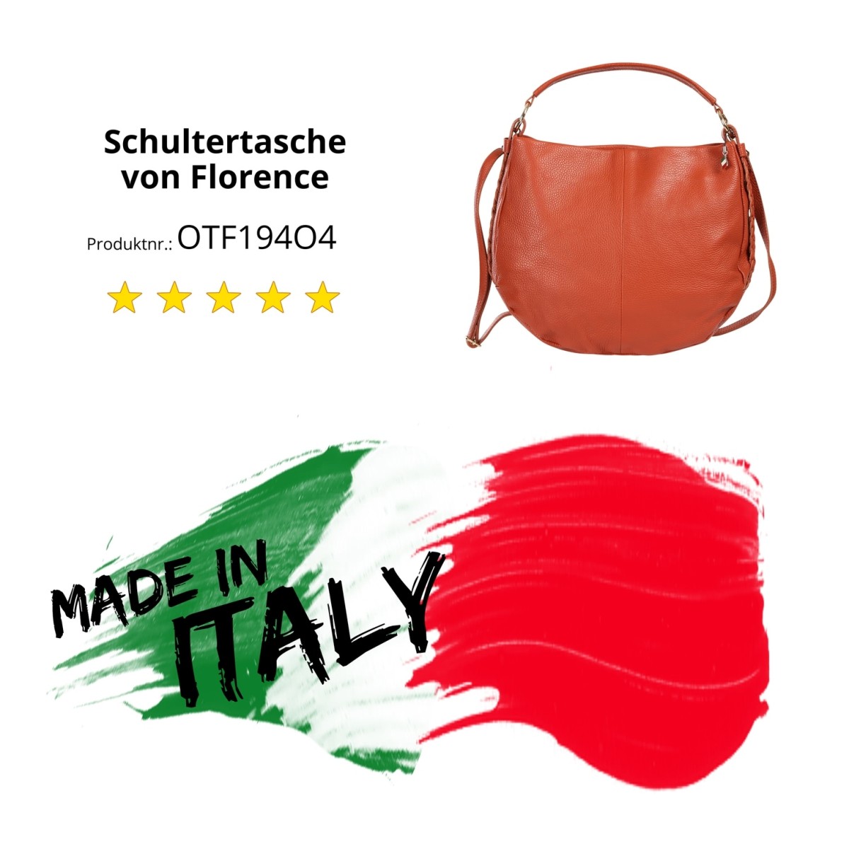 Die stylische Schultertasche von Florence ist eine moderne Tasche für jeden Anlass. Sie verfügt über eine dekorative Flechtung an der Seite und metallische Akzente, die der Tasche einen besonderen Touch verleihen. Diese Echtledertasche hat eine sehr gute Aufteilung, wo alle wichtigen Sachen, wie zum Beispiel Geldbörse, Handy, Kosmetik und Schlüssel ihren Platz finden. Der große Handgriff kann lässig über der Schulter getragen werden und außerdem ist noch ein langer, abnehmbarer Gurt vorhanden. Die Breite der Tasche ist ca. 40cm.- Besonderheiten: