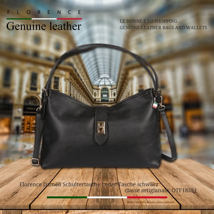 Florence Damen Schultertasche Leder Tasche schwarz OTF185S1