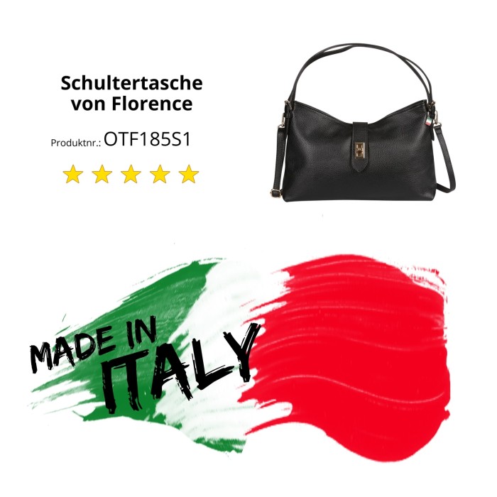Die praktische Schultertasche von Florence ist eine moderne Tasche für die Freizeit und der Arbeit. Diese Echtledertasche hat eine große Öffnung, wo alle wichtigen Sachen, wie zum Beispiel Geldbörse, Handy, Kosmetik und Schlüssel ihren Platz finden. Der große Handgriff sind verstellbar und können lässig über der Schulter oder in der Hand getragen werden. Die Breite der Tasche ist ca. 37cm.- Besonderheiten: