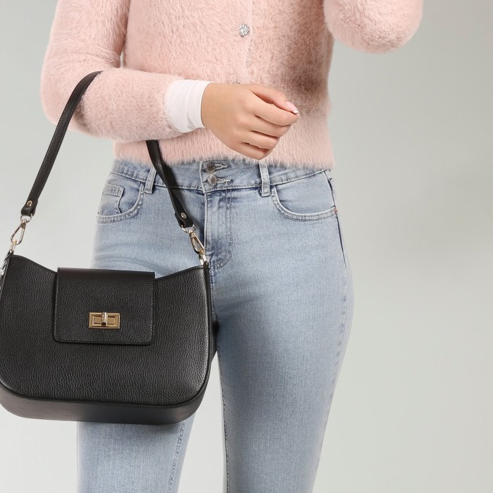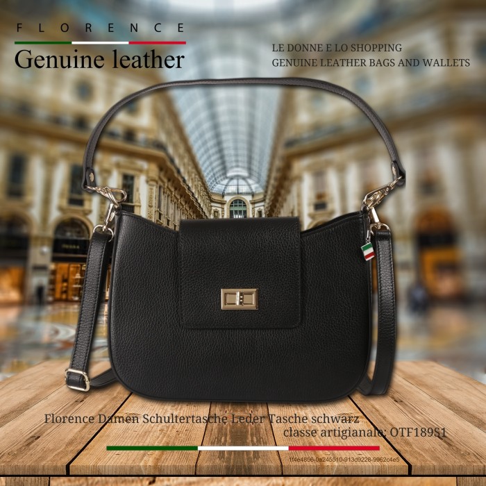Florence Damen Schultertasche Leder Tasche schwarz