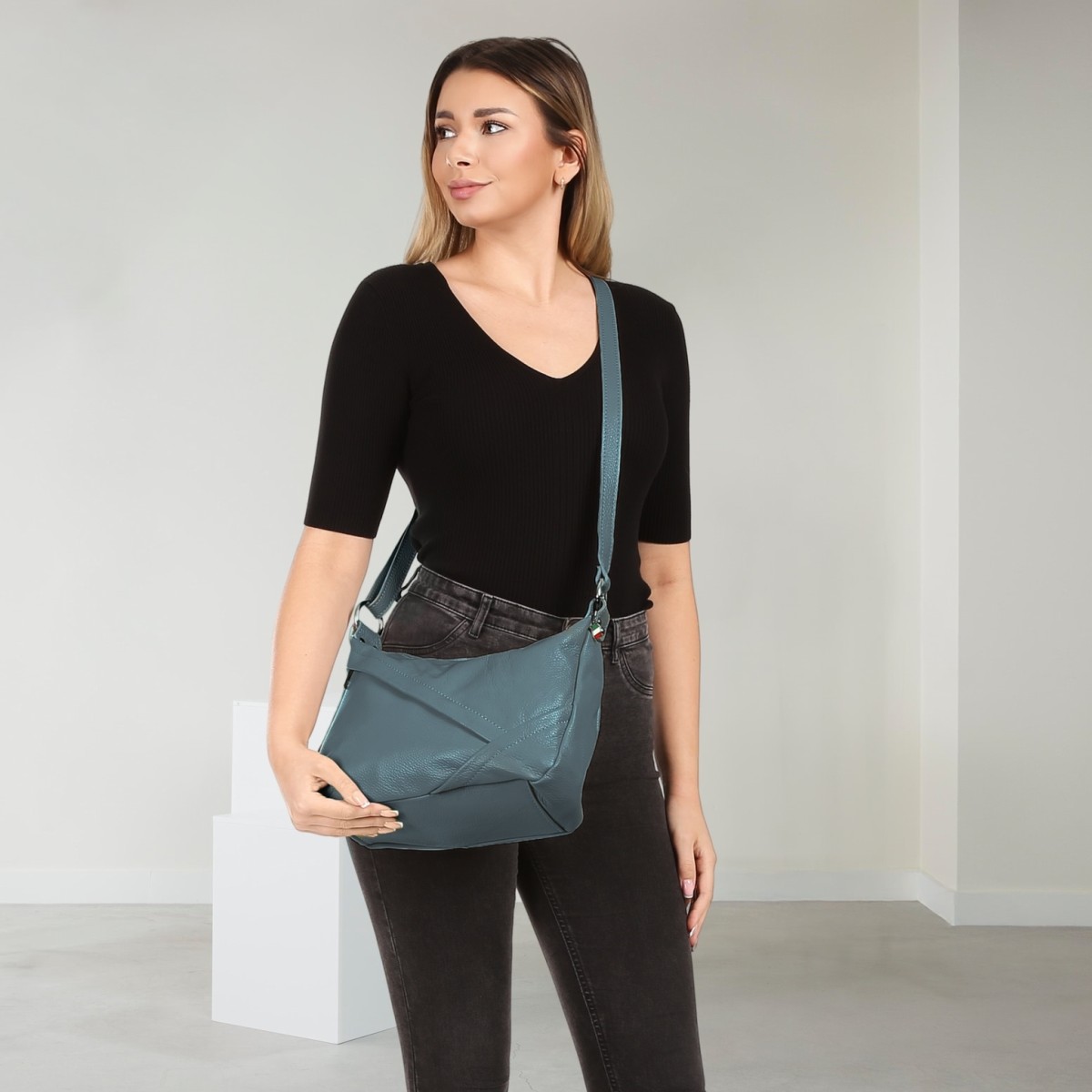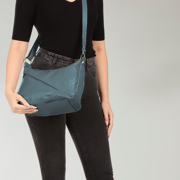 - Kurzbeschreibung: Schultertasche in taubenblau mit Reißverschluss