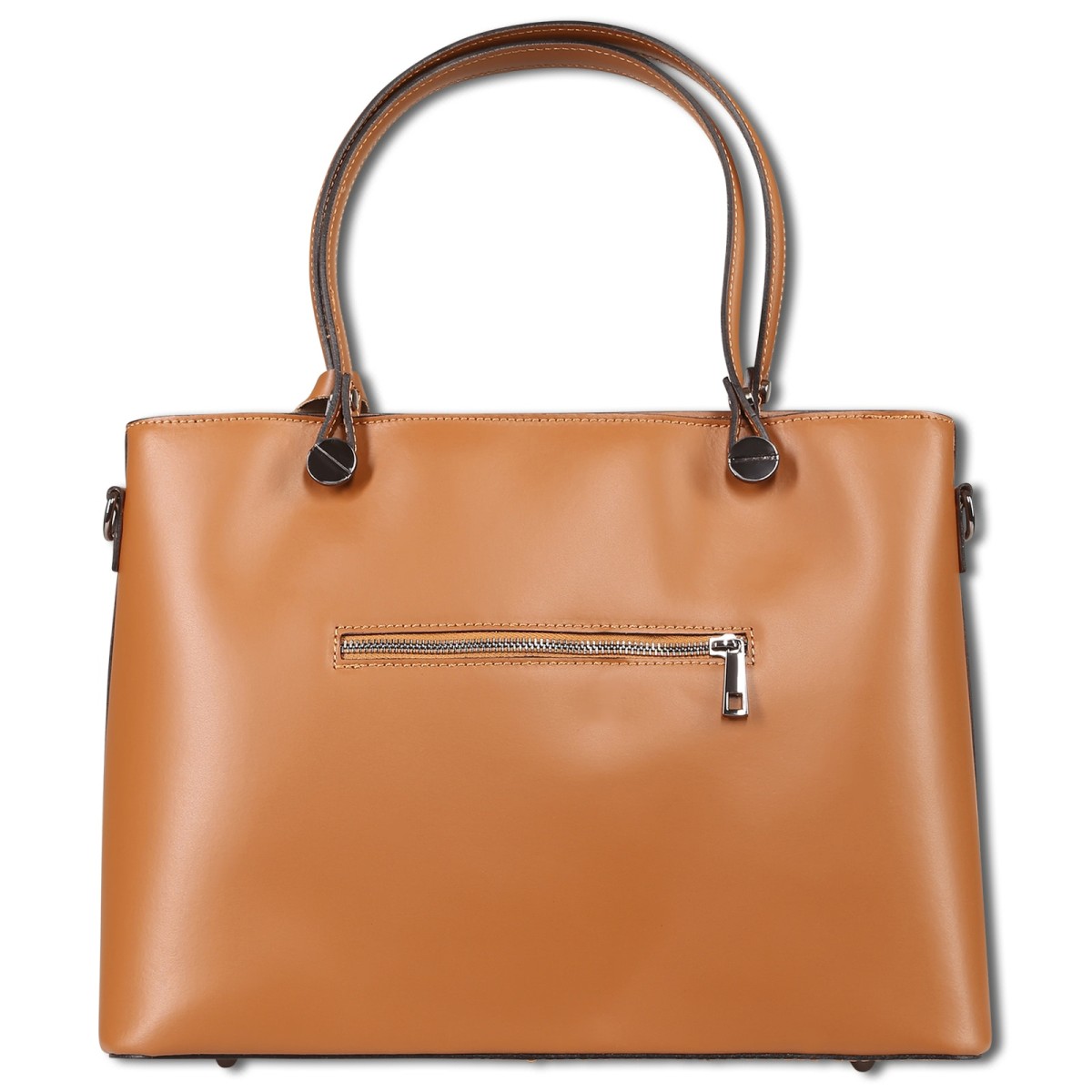 - Besonderheiten: Hauptfach mit Reißverschluss, schwarze Metallbeschläge