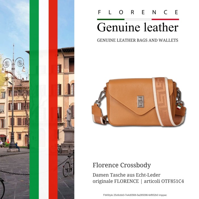 Die Italienische Marke Florence beeindruckt mit Taschen, Geldbörsen und Rucksäcken, die durch die Verarbeitung von hochwertigem Leder, meisterhafte italienische Handwerkskunst, sowie stilvolle und modische Designs bestechen.