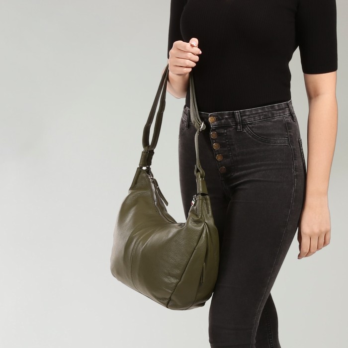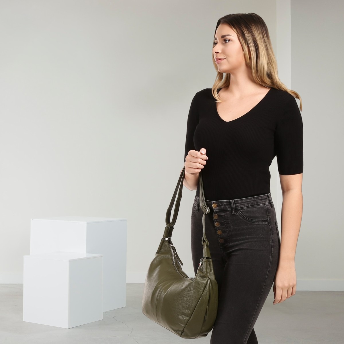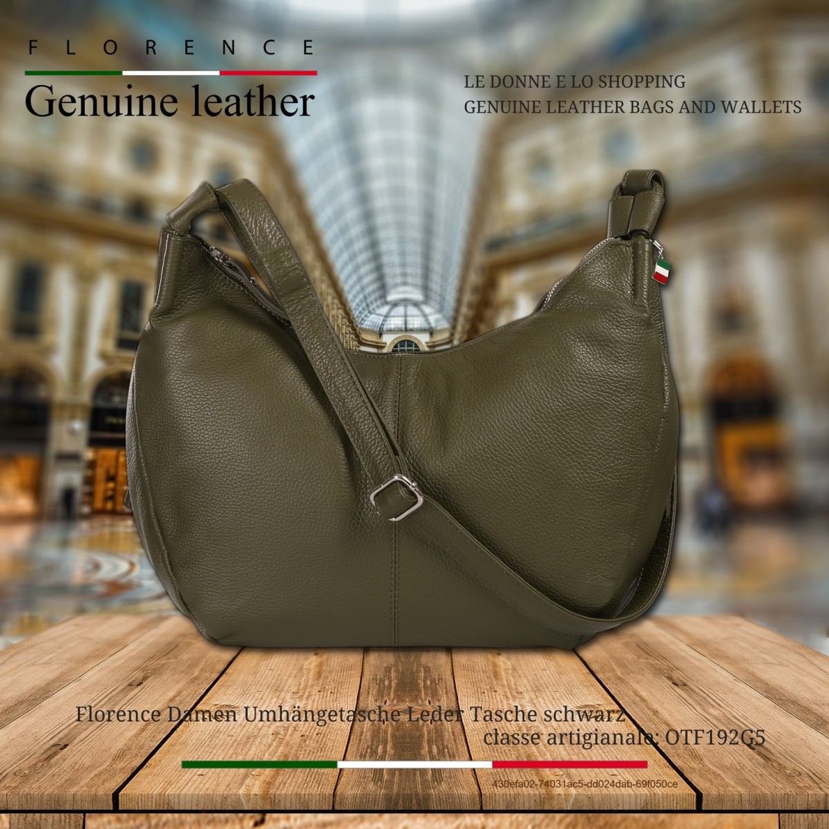 Florence Damen Umhängetasche Leder Tasche olivgrün