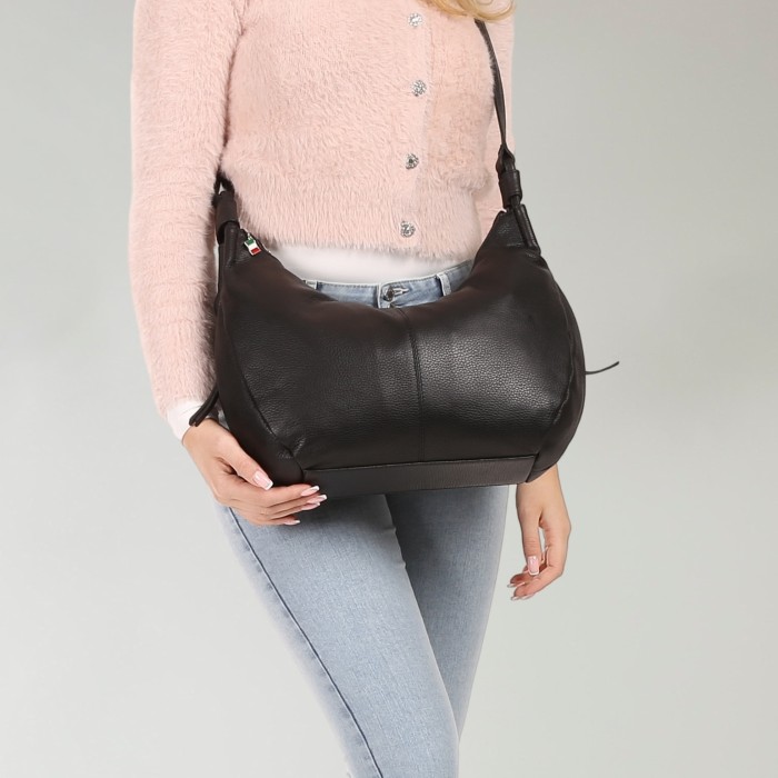 Florence Damen Umhängetasche Leder Tasche schwarz