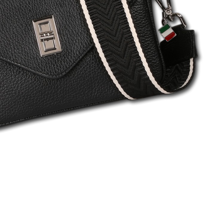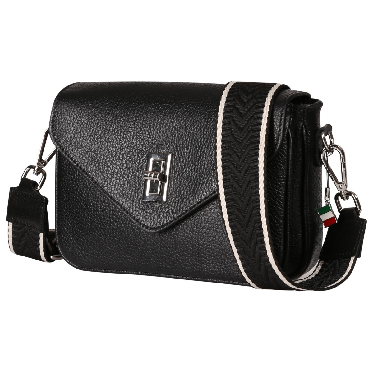 Diese moderne Schultertasche besticht durch die praktische Form und ist aus italienischem Leder. Sie wird mit einer Klappe und zusätzlich einem Reißverschluss sicher verschlossen. Die Echtledertasche ist mit einem dekorativen Gurt ausgestattet, der verstellbar und austauschbar ist. So kann die Tasche crossbody getragen werden. Diese stylische Design-Tasche hat eine Größe von ca. 22cm x 15cm.- Besonderheiten: