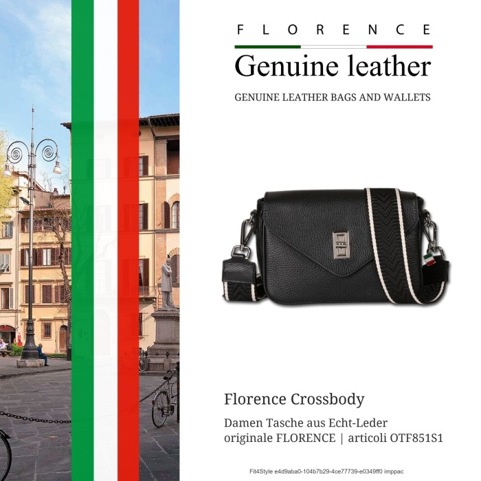 Die Italienische Marke Florence beeindruckt mit Taschen, Geldbörsen und Rucksäcken, die durch die Verarbeitung von hochwertigem Leder, meisterhafte italienische Handwerkskunst, sowie stilvolle und modische Designs bestechen.