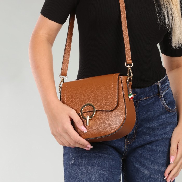 Florence Damen Umhängetasche Leder Satteltasche hellbraun OTF843N3