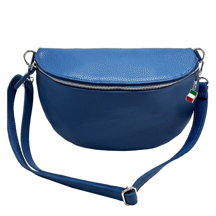 Große Bauchtasche Leder marineblau Damen, Jugend Gürteltasche, Umhängetasche - Florence