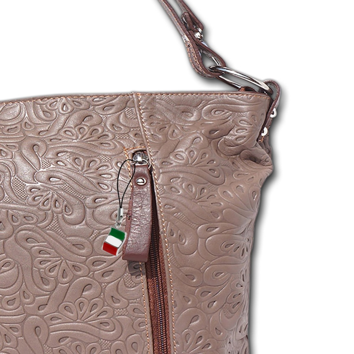 Lässige Schultertasche/Henkeltasche aus echtem, weichem Leder kann durch den Riemen bequem auf der Schulter oder lässig an der Hand getragen werden. Die Tasche hat ein geteiltes Hauptfach anzubieten und hat innen noch eine Handytasche und eine kleine Seitentasche mit Reißverschluss. Diese moderne und geräumige Schultertasche ist unerlässlich im Businessalltag und in der Freizeit. Im Lieferumfang enthalten ist ein Italienflaggen-Anhänger, der am Produkt oder auch als Handyanhänger getragen werden kann.- besondere Eigenschaften