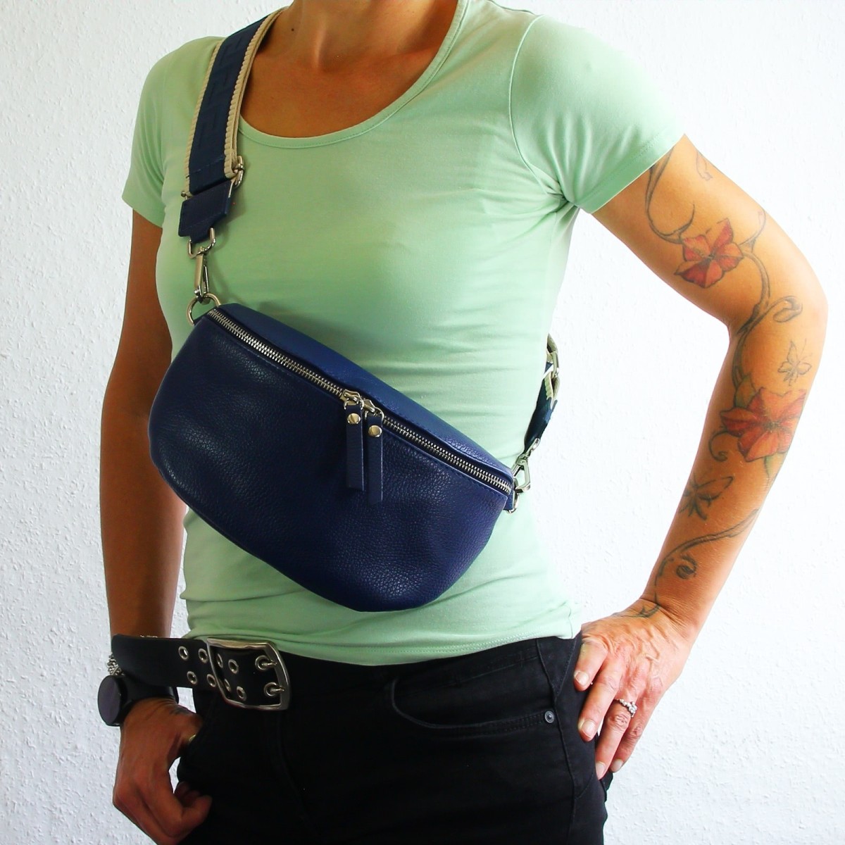 - Kurzbeschreibung: Damen Gürteltasche in dunkelblau aus Echt-Leder