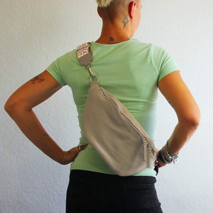 Große Gürteltasche Leder beige Damen, Jugend Bauchtasche inklusive 2 Gurte - Florence