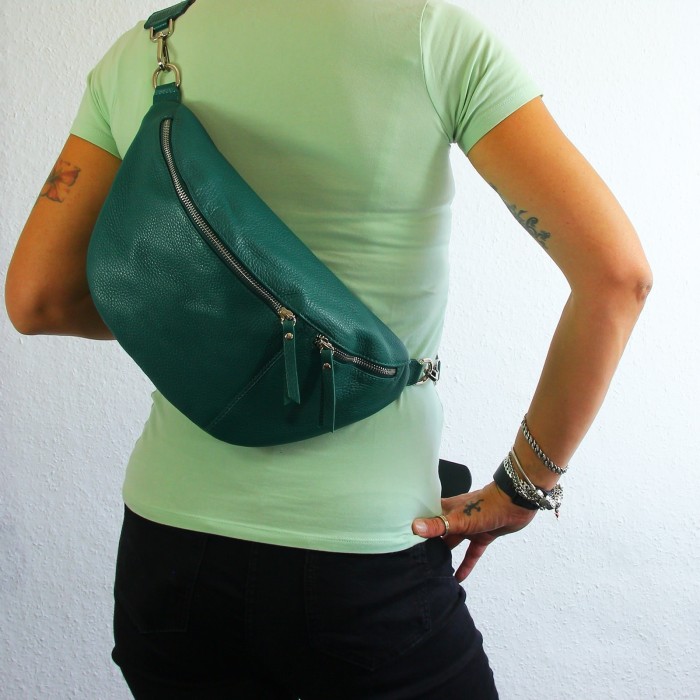 Große Gürteltasche Leder hellgrün Damen, Jugend Bauchtasche inklusive 2 Gurte - Florence