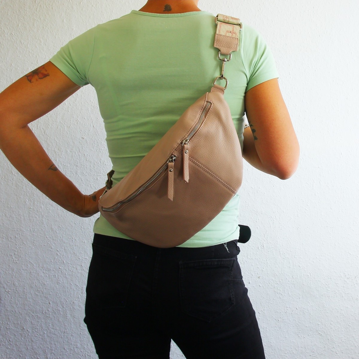 - Kurzbeschreibung: Sehr große Gürteltasche in pastell rosa aus Echt-Leder Damen
