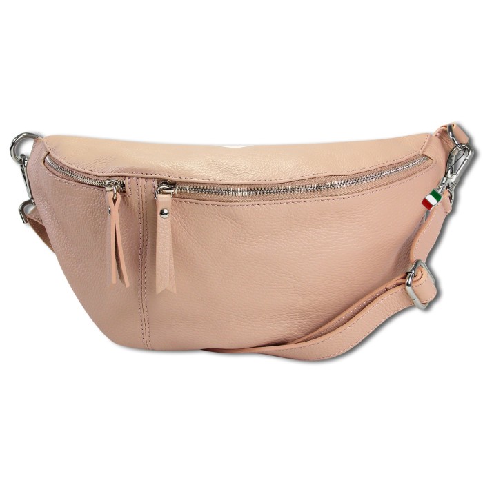 Große Gürteltasche Leder pastell rosa Damen, Jugend Bauchtasche inklusive 2 Gurte - Florence