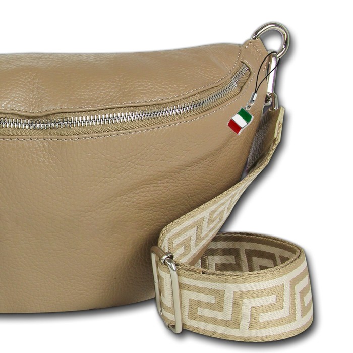 - Kurzbeschreibung: Sehr große Gürteltasche in taupe aus Echt-Leder Damen