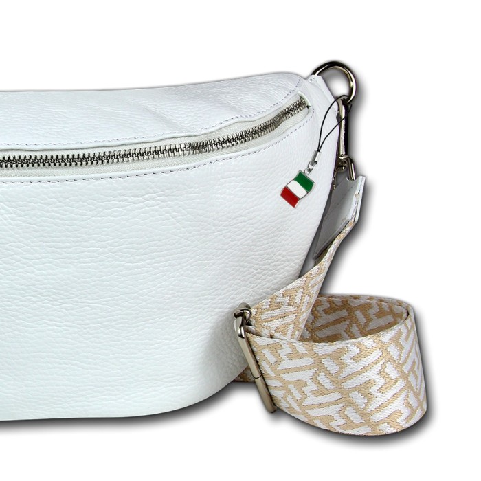 - Kurzbeschreibung: Sehr große Gürteltasche in weiß aus Echt-Leder Damen