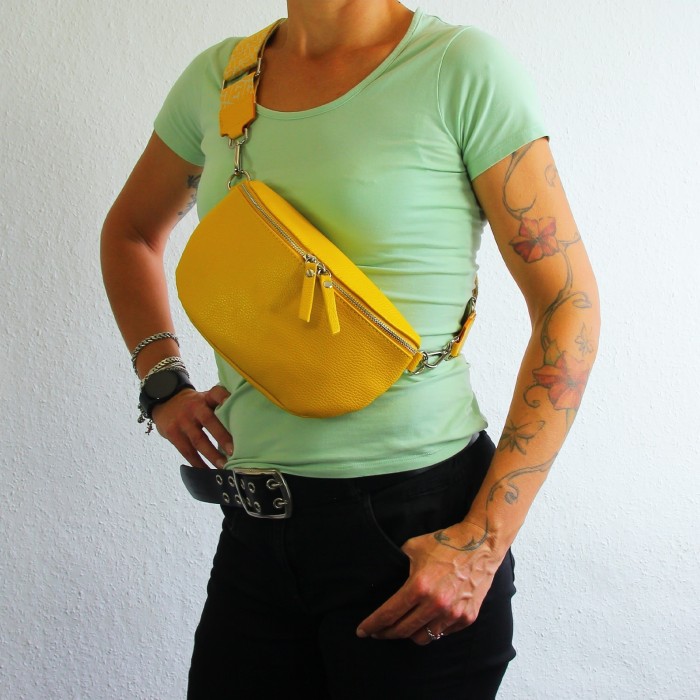 - Kurzbeschreibung: Damen Gürteltasche in gelb aus Echt-Leder
